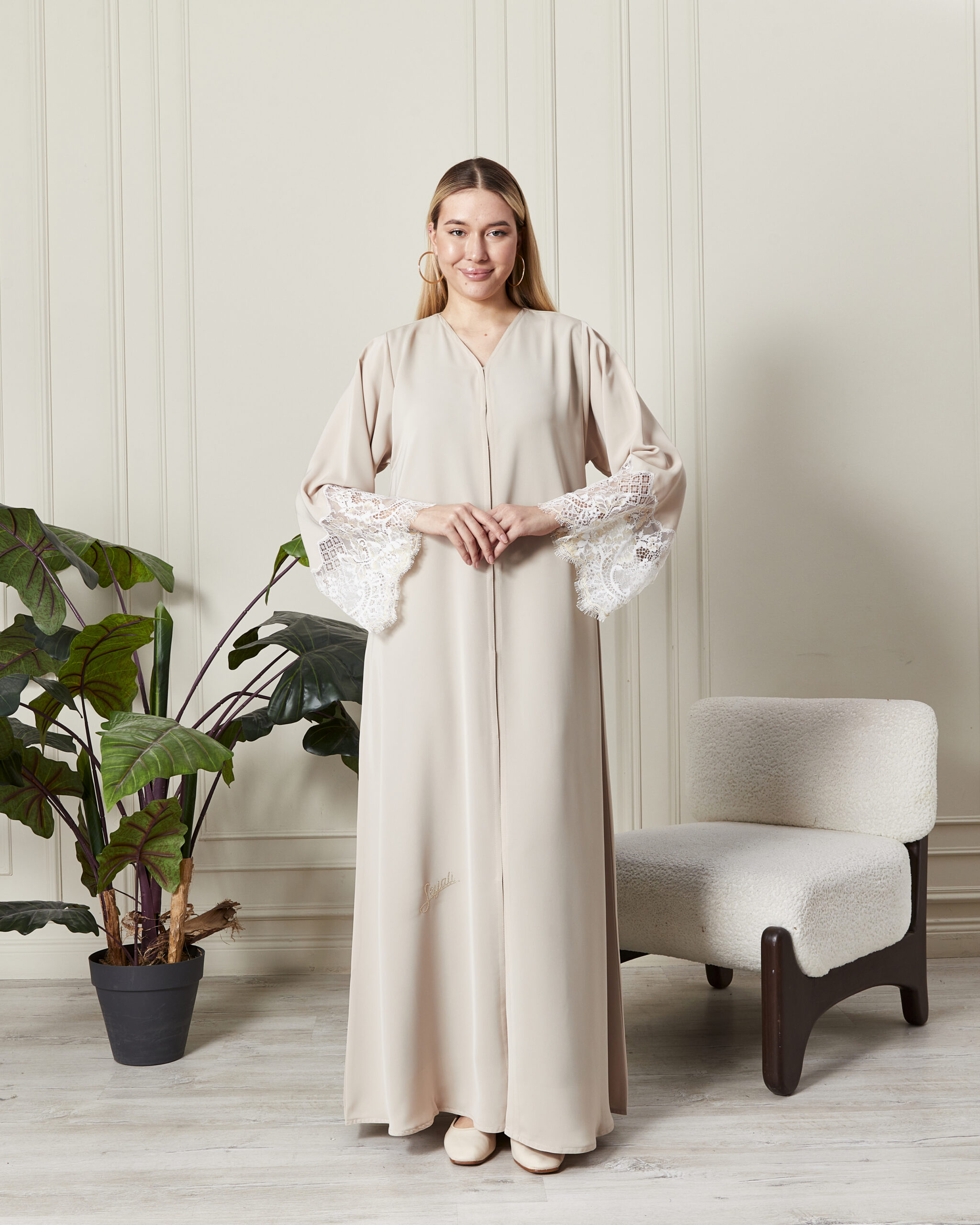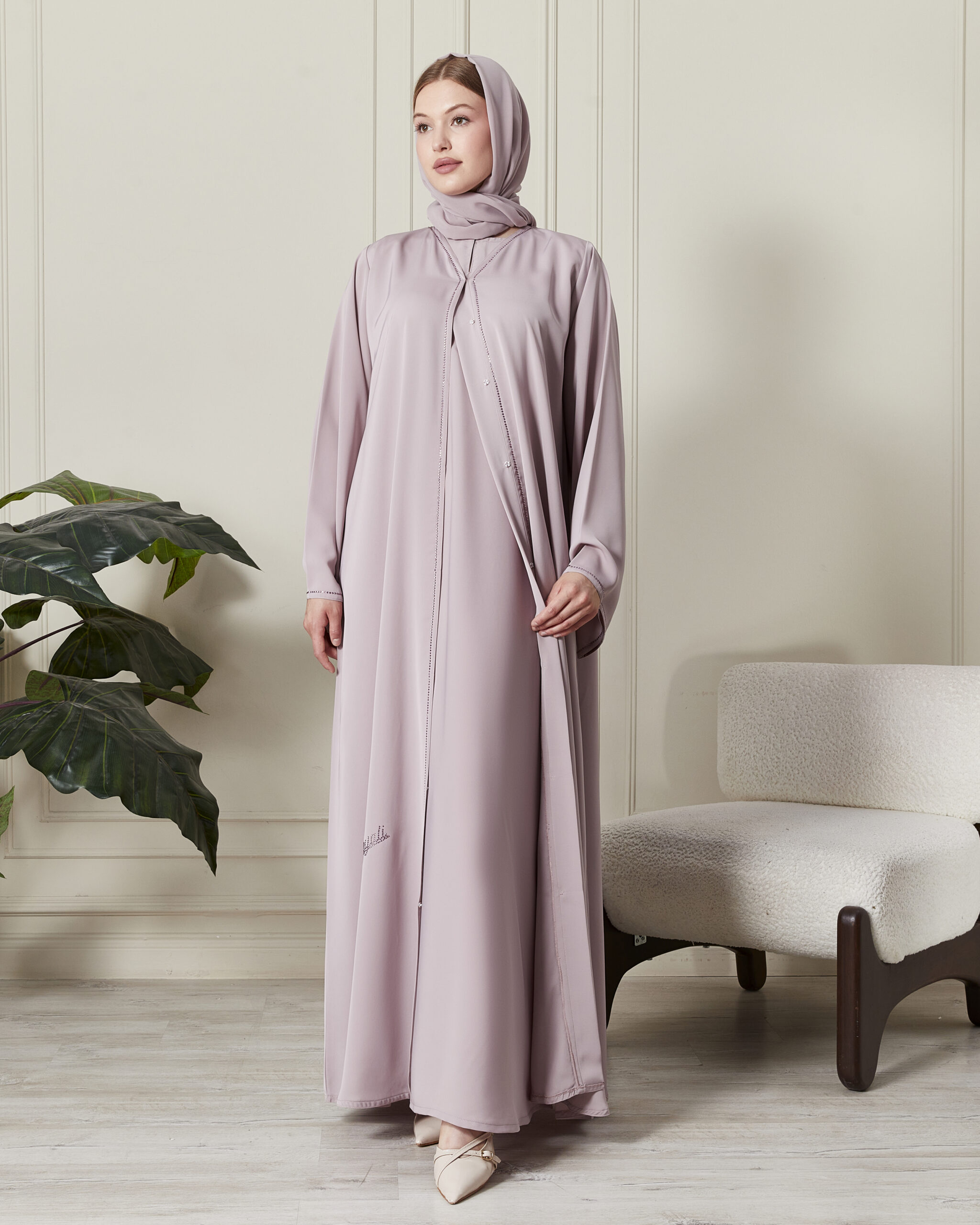 Leyali Dubai | Pudra Swarovski Taş İşlemeli İpek Ferace Takımı
