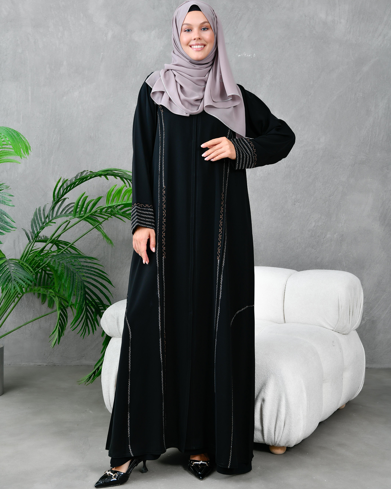 Leyali Dubai | 3 Sıra Swarovski Detaylı Abaya