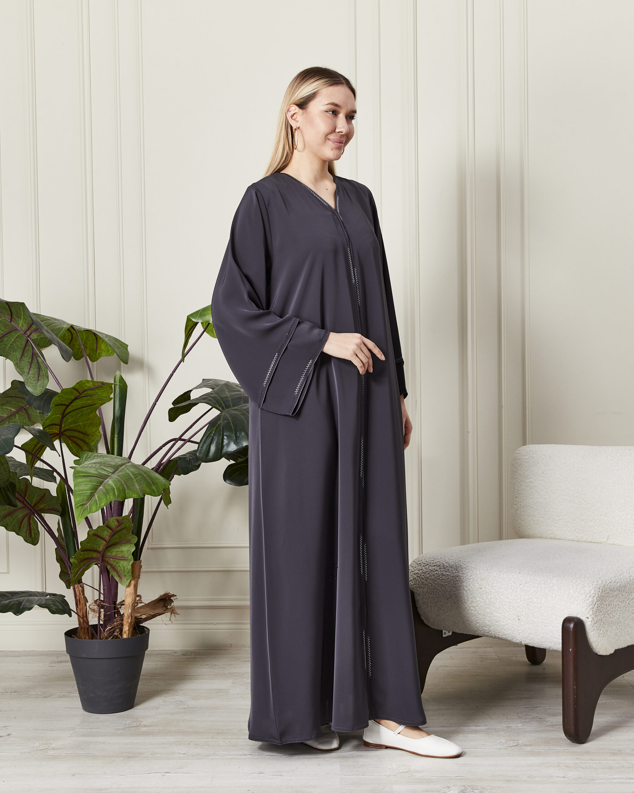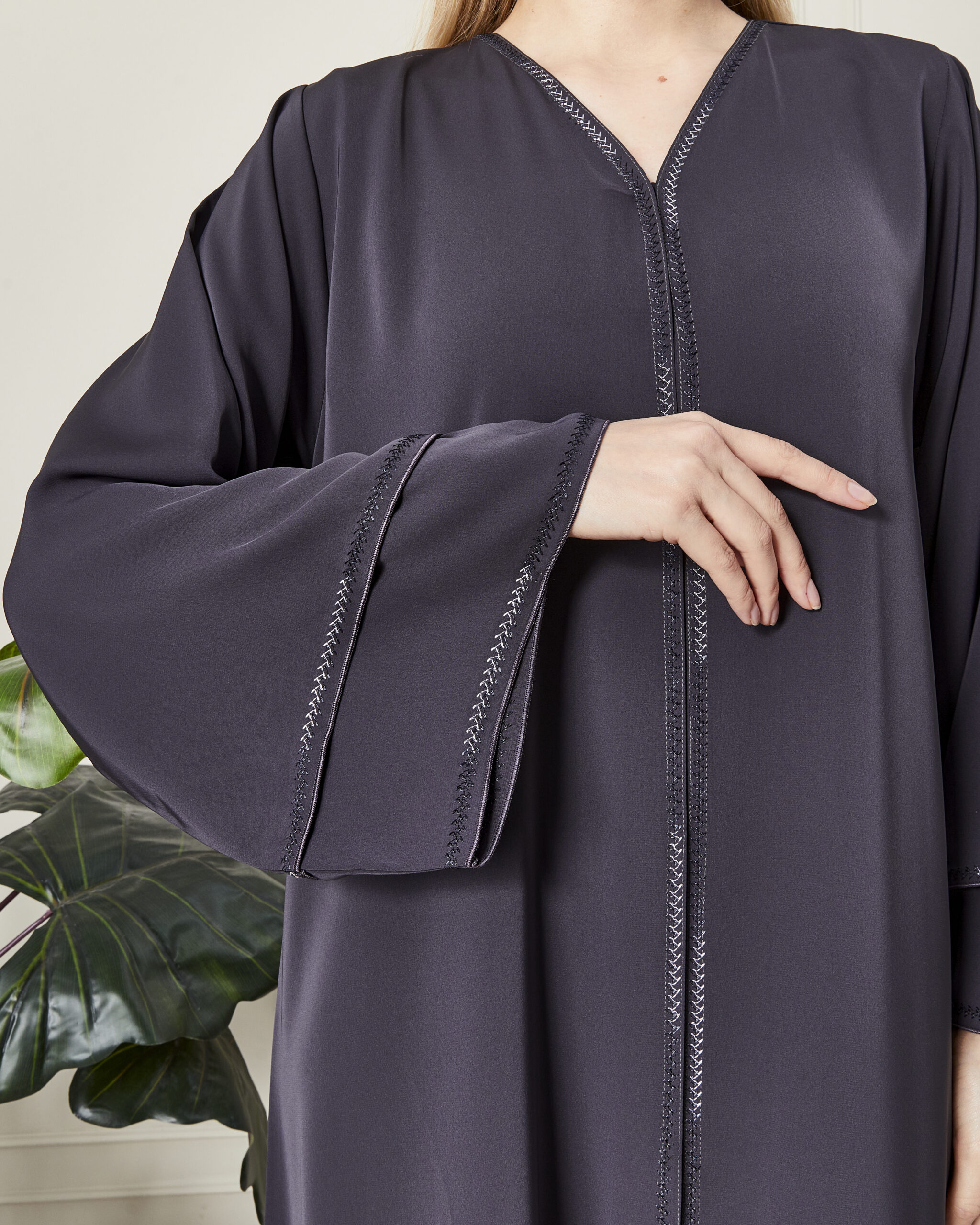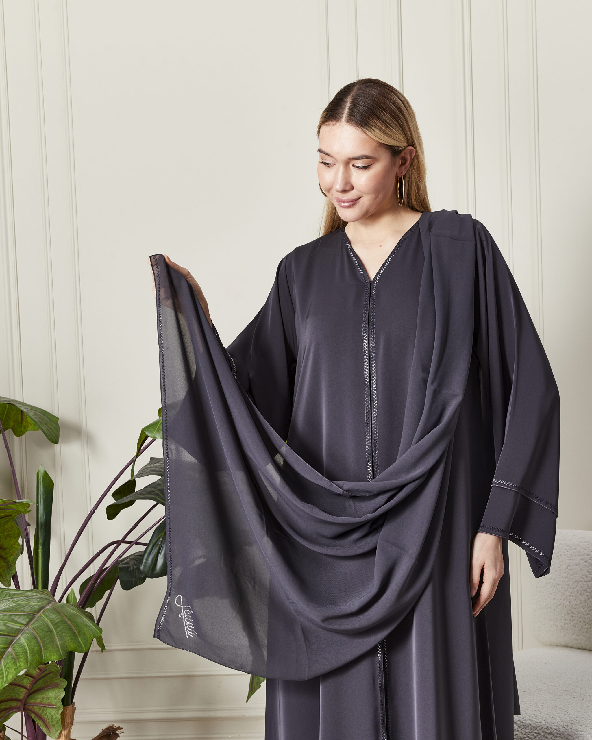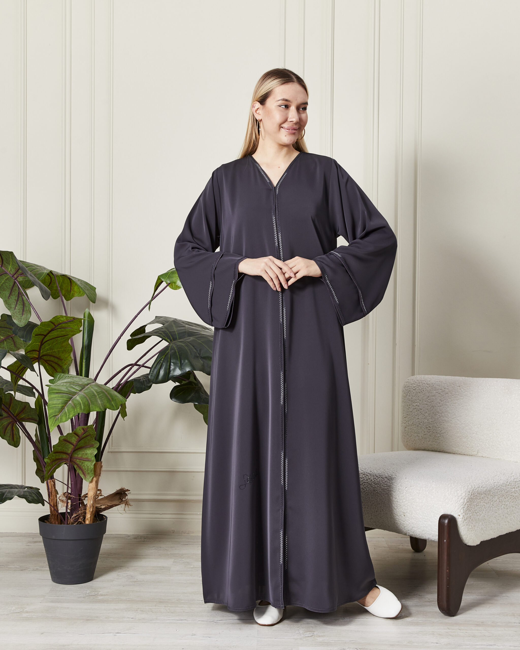 Leyali Dubai koleksiyonunun modern, minimal ve bir o kadar da iddialı parçalarından biri olan bu antrasit abaya, sadeliğin içindeki gizli lüksü temsil ediyor. Dubai’nin usta ellerinden çıkan bu tasarım, asil rengi ve ince işçiliğiyle her türlü özel davette farkınızı ortaya koyar.