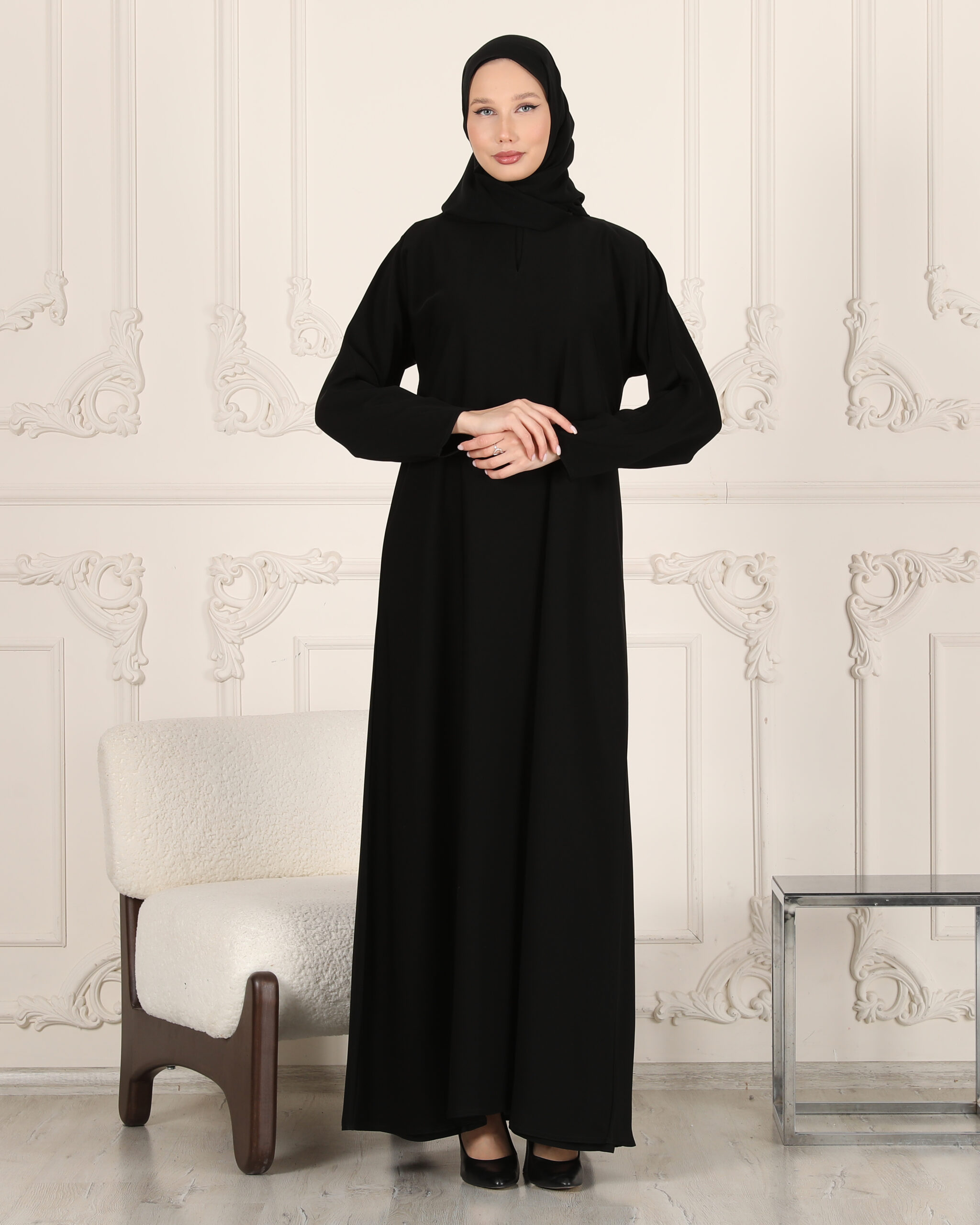 Abaya & Ferace İçliği: Dar kol yapısı sayesinde abayaların içinde potluk yapmaz, kusursuz bir baz oluşturur.