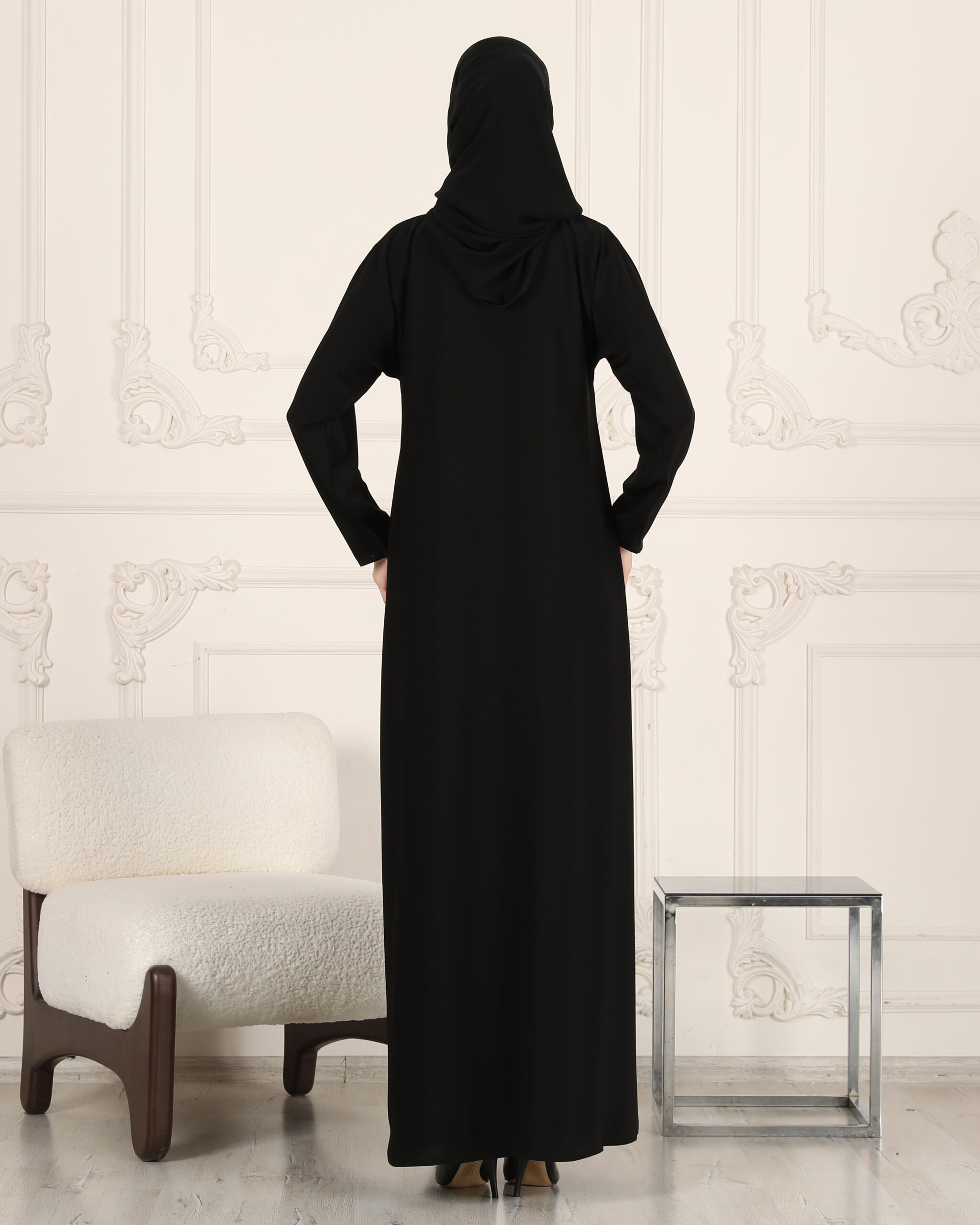 Önü Kapalı & Dar Kol Tasarımı: Önü tamamen kapalı yapısı ve bileğe kadar uzanan dar kol kesimi sayesinde tam koruma ve tesettür sağlar.