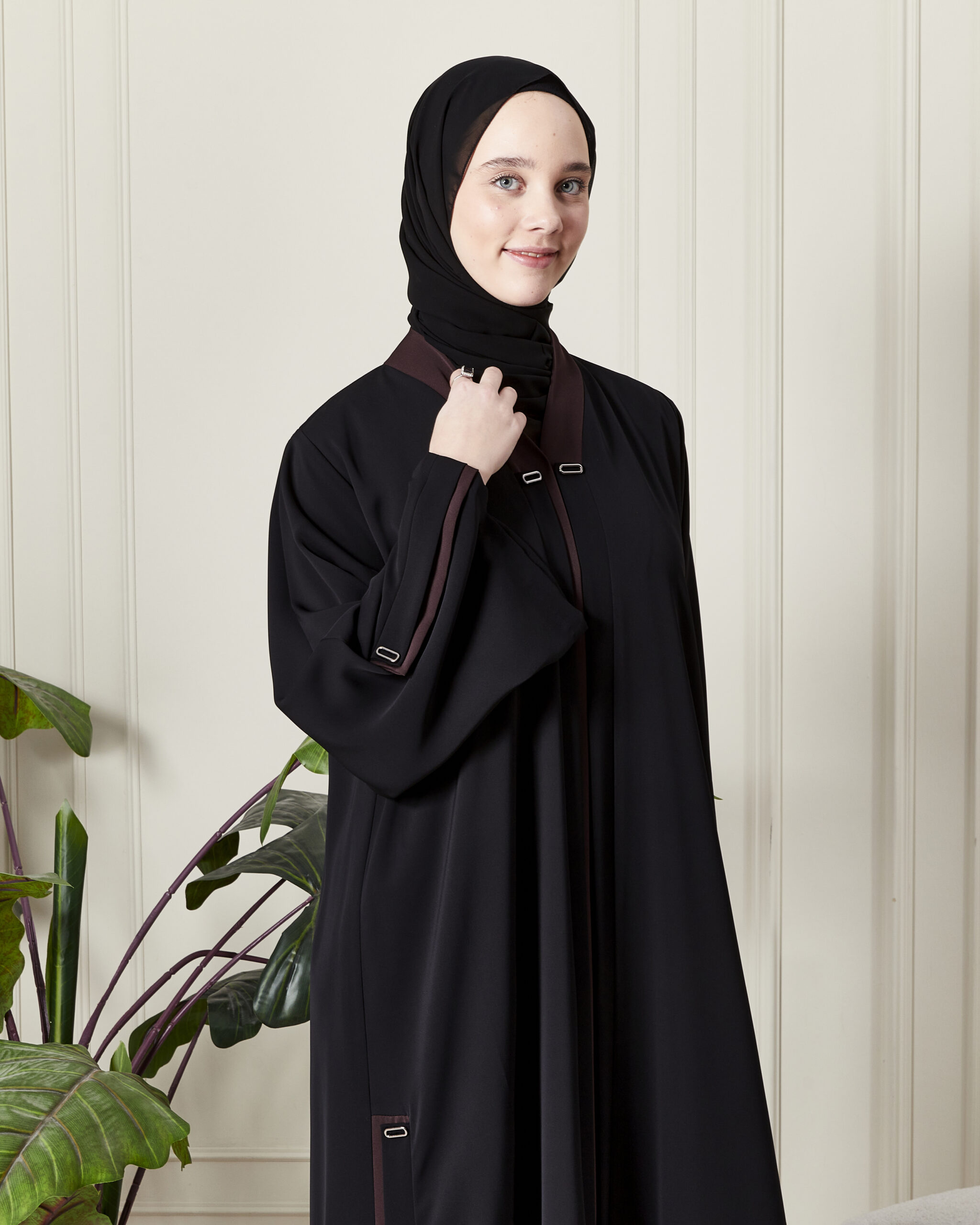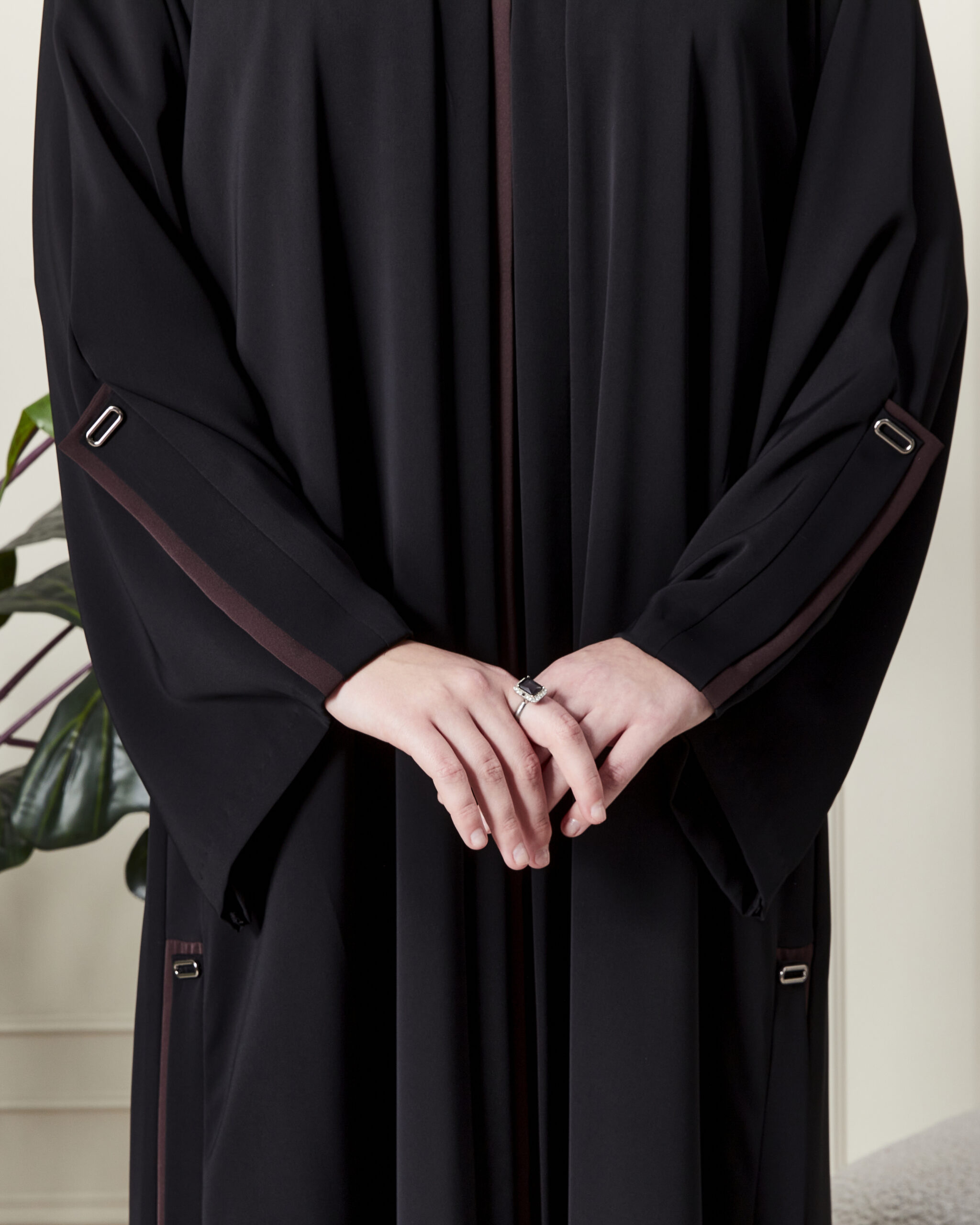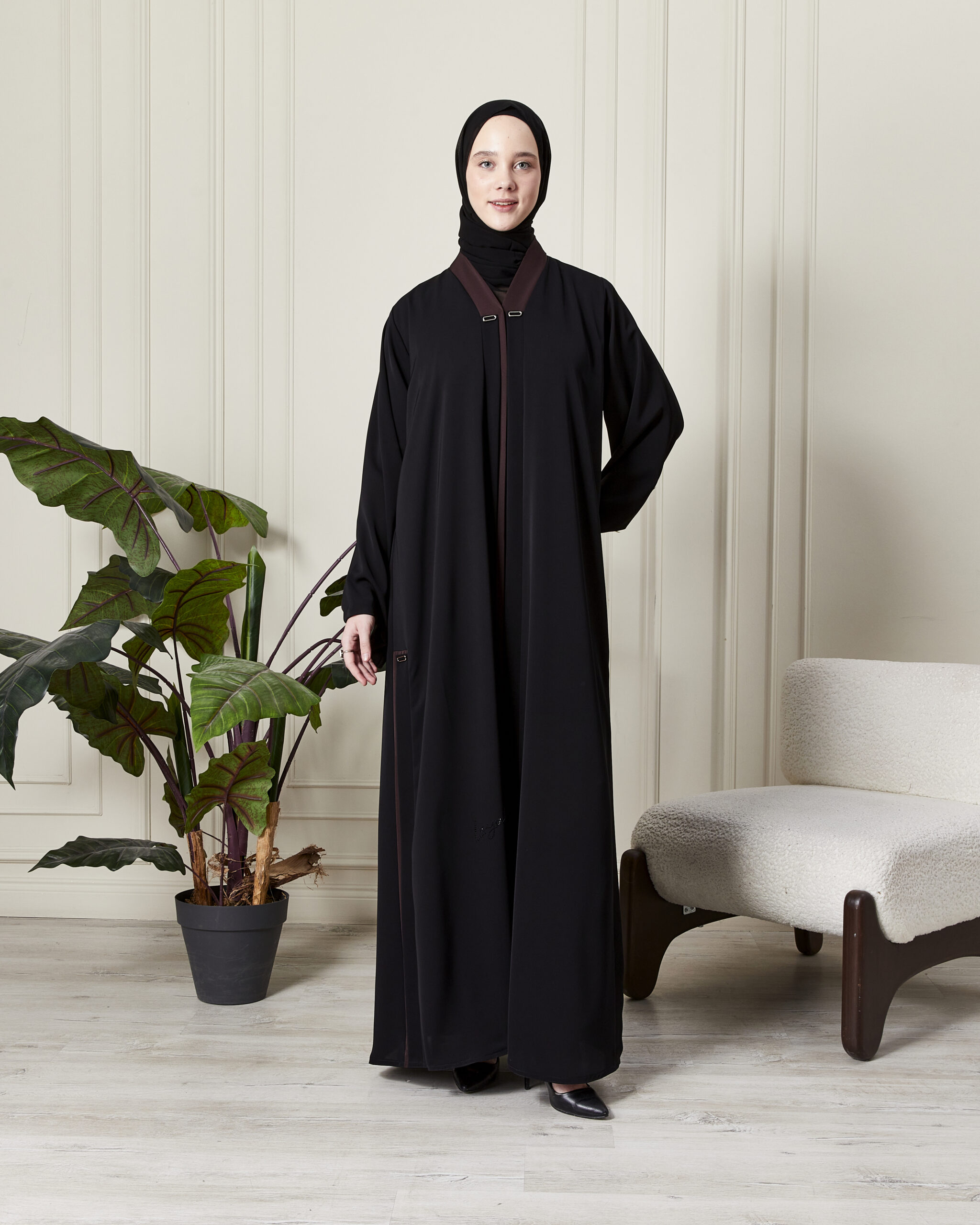 Sıradan feracelerden sıkılanlar için yan dikişlerdeki ve kollardaki detaylar hareketli bir silüet oluşturur. Hem spor ayakkabılarla günlük şıklık yakalamak hem de topuklu ayakkabılarla resmiyet kazanmak için idealdir.